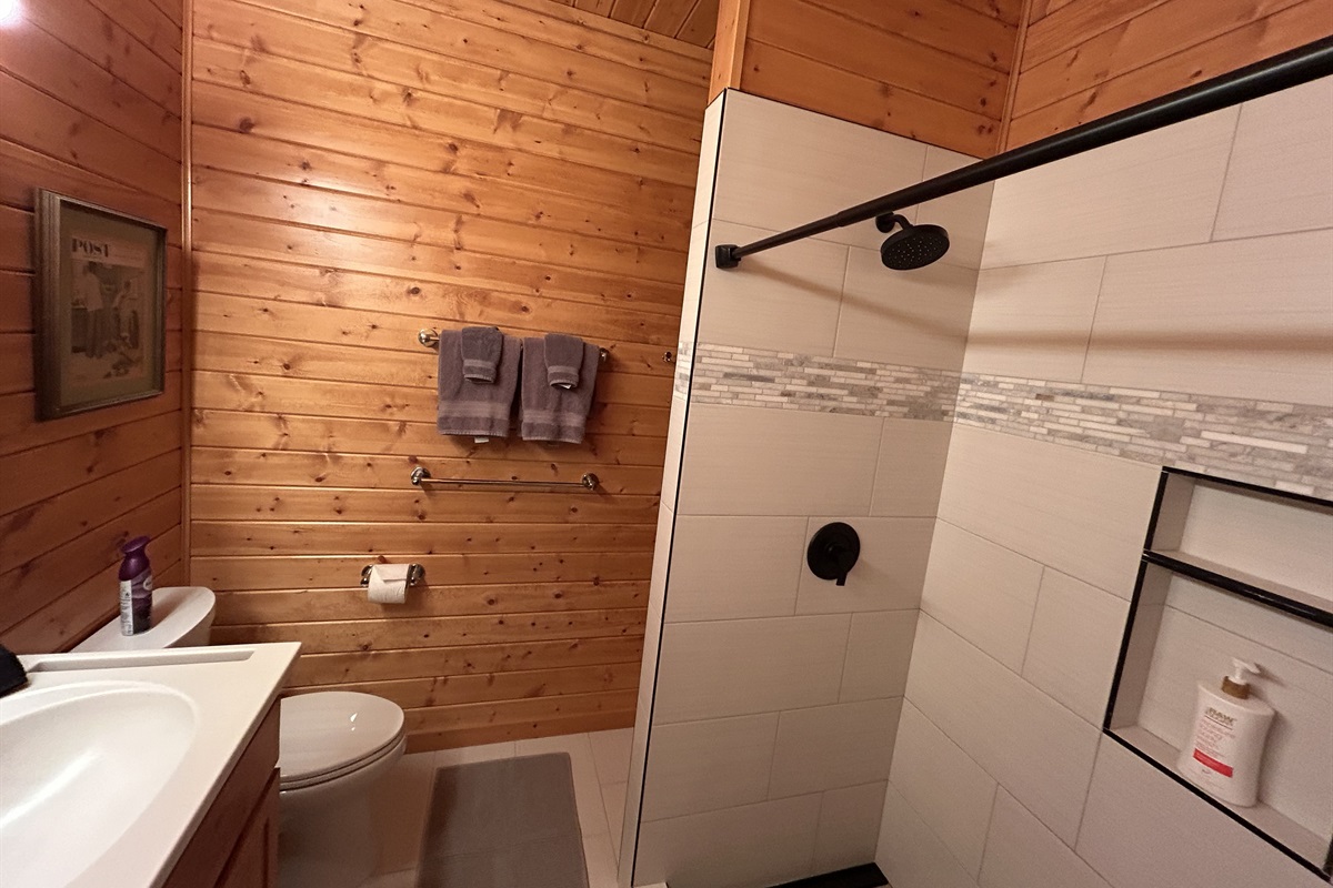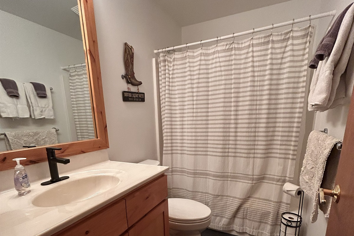 It features three bedrooms, a sleeper couch in the downstairs den, two full bathrooms, a fully-equipped kitchen with everything you'll need to make yourselves at home, along with a Great Room made for entertaining and spending time with friends and family. Or watch one of your favorite shows on the new flat screen TV! The stacked-stone fireplace in the open Great Room can be a great comforting amenity on chilly nights, adding a bit of western ambiance to the experience. There is a large dining table to seat all of your guests. A gas BBQ grill on the deck helps to get the men involved in the meal prep. The two main floor bedrooms include one king-size bedroom and another with two queen beds. They share a full bathroom in the hall, with a double vanity, shower and jetted tub. The lower level consists of another bedroom with three twin beds, and a den with a queen sleeper couch, and Dish Network satellite TV. You'll also find the laundry room and a second full bathroom downstairs. We provide high quality bedding to ensure a good nights rest on your vacation.